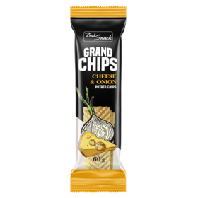 GRAND CHIPS bulvių traškučiai sūrio ir svogūnų skonio, 60g